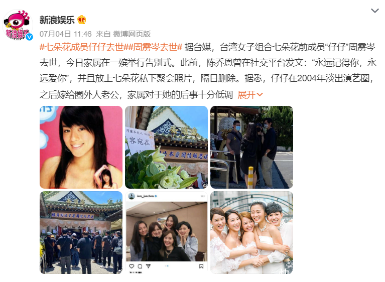 2004年,“七朵花”组合在文娱圈宣布出谈,包括周雳岑在内,其他成员还有陈乔恩、赵小侨、屈旻洁、赖薇如、邱纬芬、王宇婕一共7东谈主。