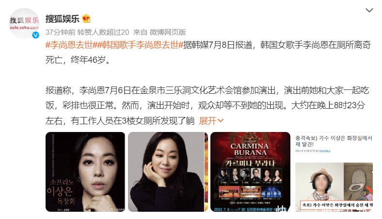 据韩国媒体报谈,李尚恩转眼被发当今行径会场3楼卫生间中我晕,随后被紧要送往病院,但到病院前,她就照旧罢手了呼吸。