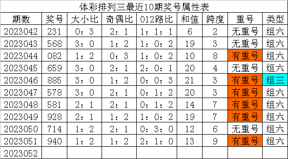 皇冠信用登录网址体彩摆设三最近10期别离开出奖号:231、568、082、659、885、578、581、928、714、940,各奖号属性详见下表: