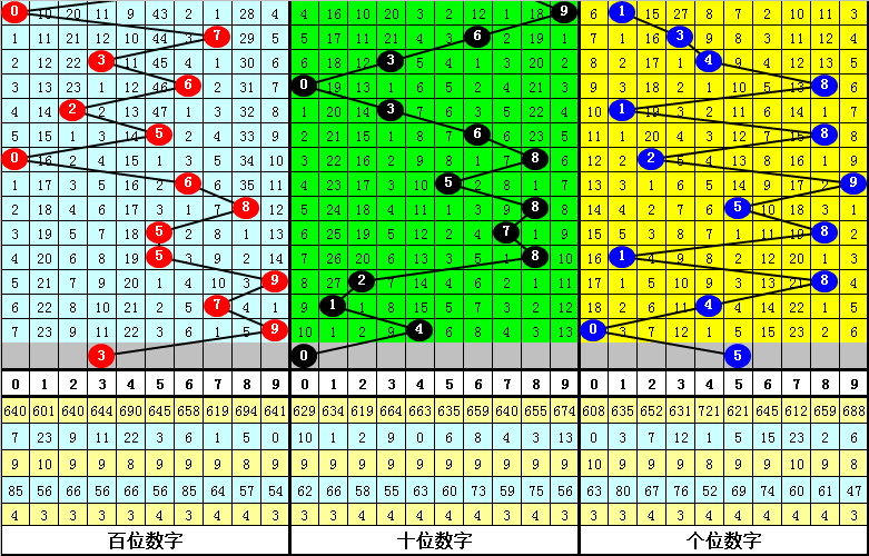 其中,号码0-9开出次数别离为:号码0开出3次、1开出2次、2开出4次、3开出2次、4开出0次、5开出3次、6开出5次、7开出4次、8开出4次、9开出3次。