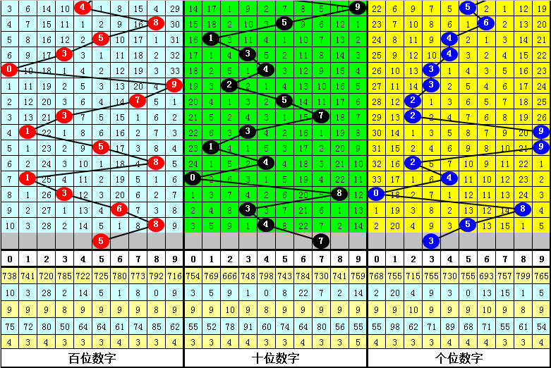 百位杀号:上期百位开出号码8,历史上百位号码8已开出792次了,最近100次百位号码8出现之后,其下期各号码频次分辩为:号码5、7出现12次,1、8出现11次,0、3出现10次,2、4、9出现9次,6出现7次。