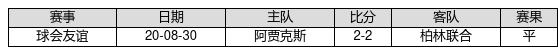 阿贾克斯 VS 柏林连络两队近10年的交战次数为1场皇冠投注app,阿贾克斯0胜1平0负,赢球概率为0%,平局概率为100%,输球概率为0%。