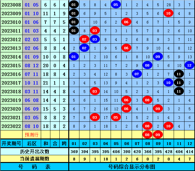 后辞别析:后区上期开出2路和1路奖号08和10,最近20期后区奖号012路比为15:12:13,最近两周后区奖号012路比为5:2:5本期后区珍贵号码01、04、07、08、09,单挑两码珍贵0路号和2路号08、09。
